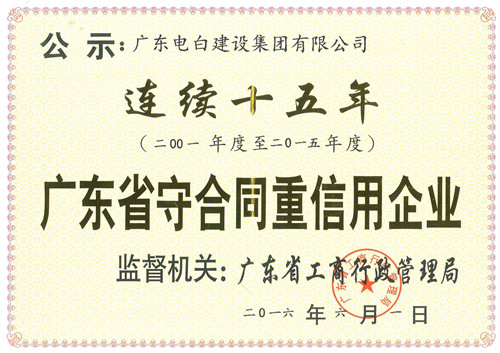 近日,电白建筑企业传来捷报,广东电白二建集团、广东恒辉建设有限公司、广东电白建设集团等一批杰出企业喜获广东省“守合同重信用企业”称号,至此,上述公司已连续十五、六年(2000-2015)获此殊荣。