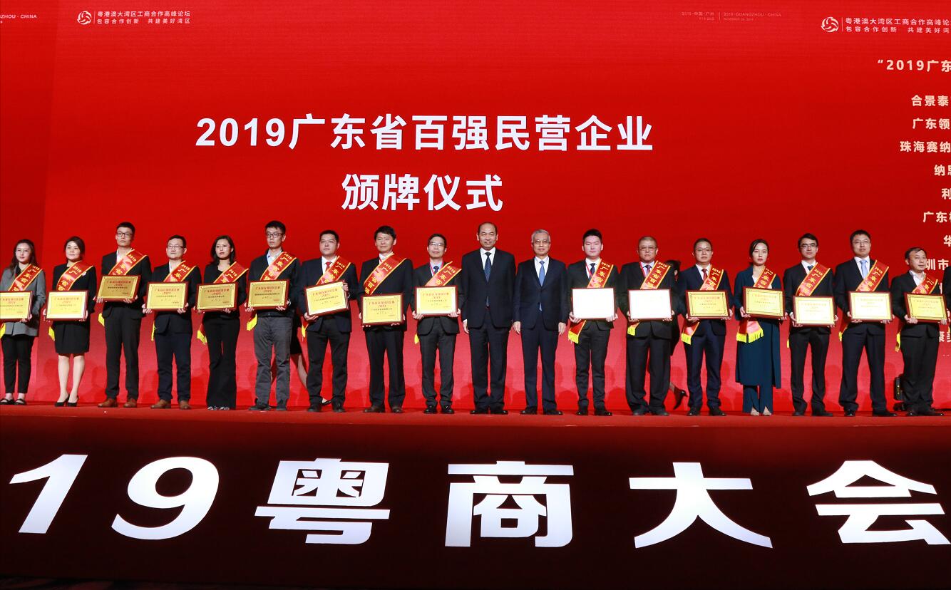 2019年11月28日,由广东省人民政府、广东省政协、全国工商联联合举办的“2019粤商大会及粤港澳大湾区高峰论坛”在广州长隆国际会展中心举行。广东永和建设集团应邀出席本次大会,广东省副省长陈良贤及全国工商联副主席邱小平两位领导为获奖企业颁发“2019年广东省百强民营企业”牌匾。